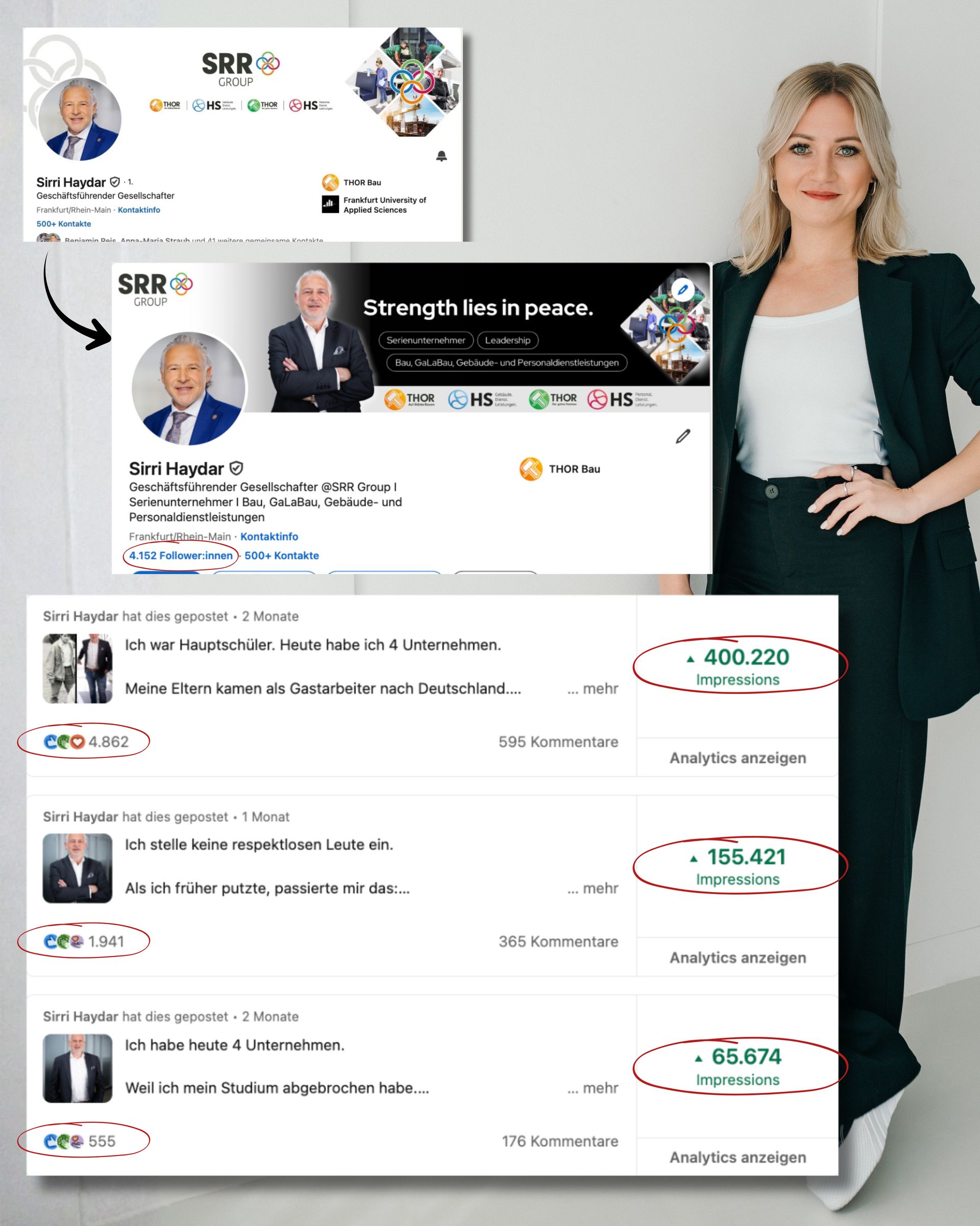 Heute sind es schon über 4.000 Follower. Mit gerade mal 2 (!) Postings pro Woche. Sirri wird in Podcasts eingeladen, auf Events erkannt, gewinnt neue Kunden und Mitarbeiter.